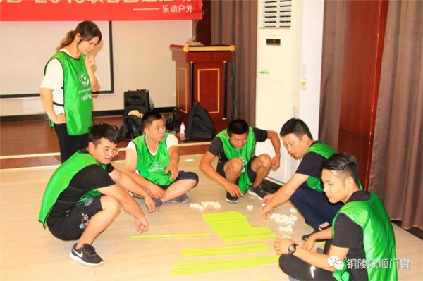 清新的空氣,明媚的陽光,鮮艷的花朵,構(gòu)成了一副絢麗的自然畫卷,拓展訓(xùn)練從“破冰活動(dòng)”項(xiàng)目開始,參訓(xùn)人員按照要求分成小隊(duì),每個(gè)小隊(duì)分別選出隊(duì)長,確定了隊(duì)名和隊(duì)歌,營造了濃厚的團(tuán)隊(duì)氛圍,為接下來的拓展項(xiàng)目奠定了基礎(chǔ)。